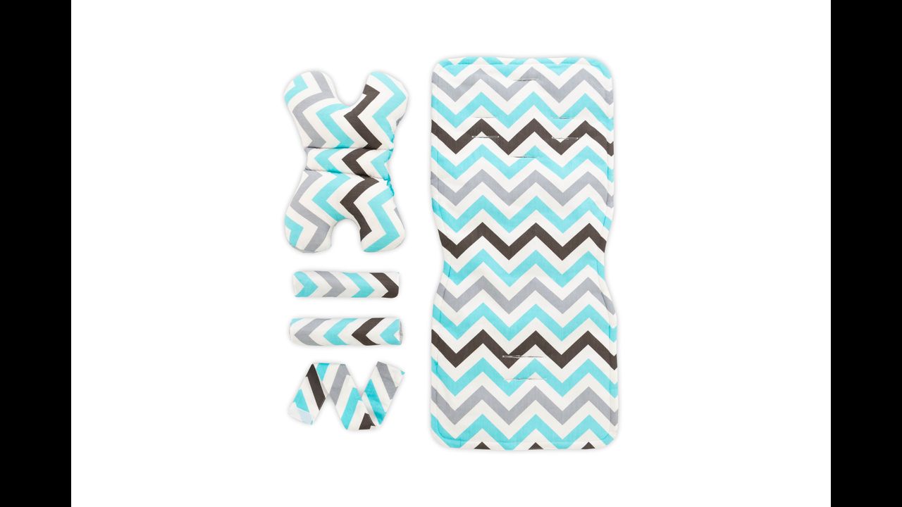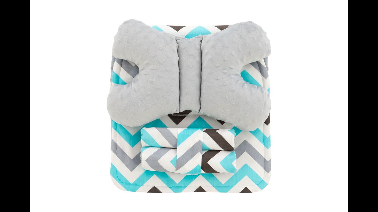 | Rinkinio sudėtis: | Dvipusis kilimėlis į vežimėlį, Pagalvėlė su drugeliu, Diržų apsaugos, Pagalvės dirželis |