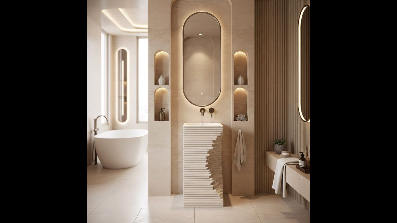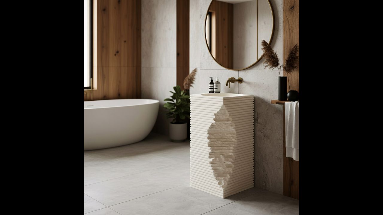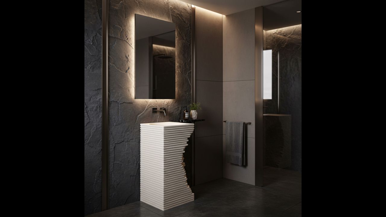 Travena Square grindinė praustuvė – idealus pasirinkimas nestandartinių sprendimų gerbėjams. Jos šiurkšti, akmeniška faktūra ir asimetriškas formos „lūžis“ puikiai tinka wabi-sabi, lofto ar minimalistinio stiliaus vonios kambariams, įnešdama ryškų architektūrinį akcentą.