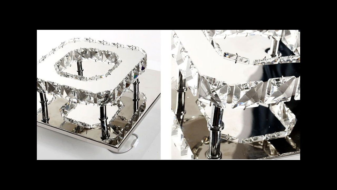 Lempa pagaminta iš aukštos kokybės metalo, atspari įbrėžimams ar mechaniniams pažeidimams. Elegantiški kristalai sukuria gražų šviesos efektą, kuris išsklaido šviesą.