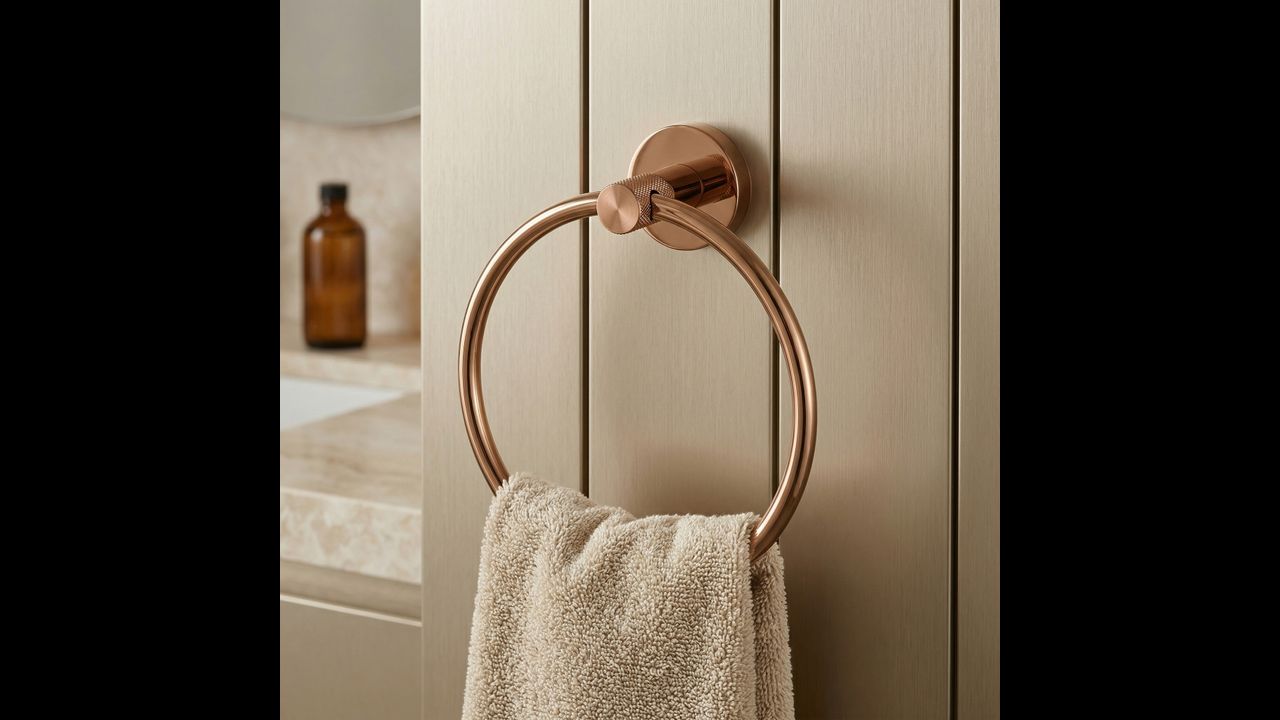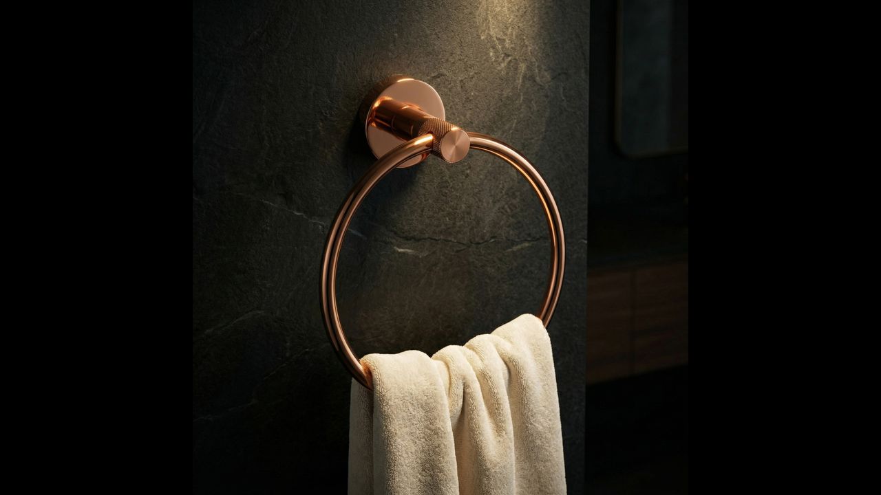 Rankšluosčių laikiklis „Modern“ – tai puikus pasirinkimas vertinantiems harmoningą estetikos ir funkcionalumo derinį. Dėl savo geometrinės formos šis gaminys tampa subtilia kiekvienos praustuvo zonos puošmena. Pasirinkę šį sprendimą, būsite tikri, kad jūsų vonios reikmenys visada bus po ranka, suteikiant interjerui prabangos i modernaus vario spindesio.