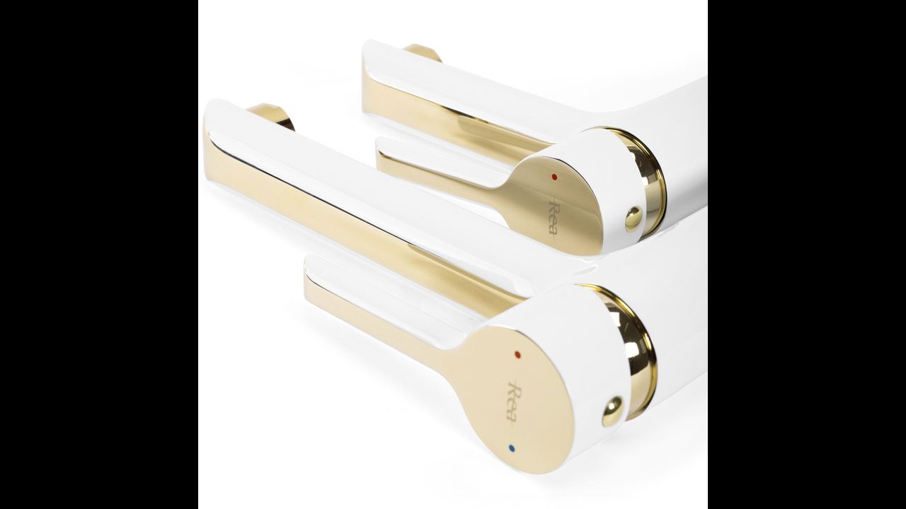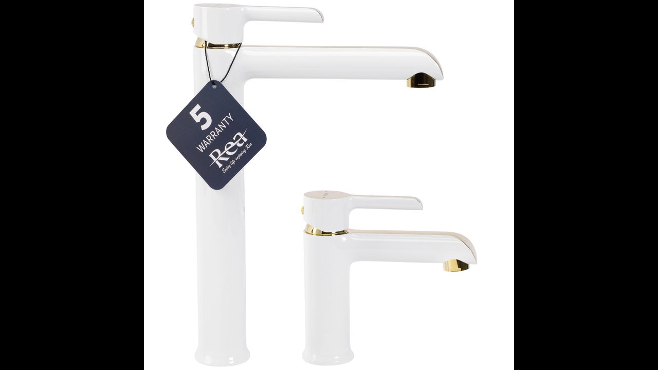 Praustuvo čiaupas Rea Melia – tai modelis pagamintas iš aukštos kokybės žalvario su baltu blizgiu paviršiumi.