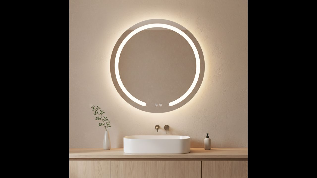 Apvalus vonios veidrodis iš Rea Modern serijos – stilingas ir funkcionalus šiuolaikinio vonios kambario akcentas. Šis modelis išsiskiria unikaliu dizainu su pieno spalvos LED rėmeliu, kuris apačioje yra nutrūkstantis, todėl forma atrodo lengvesnė ir modernesnė.