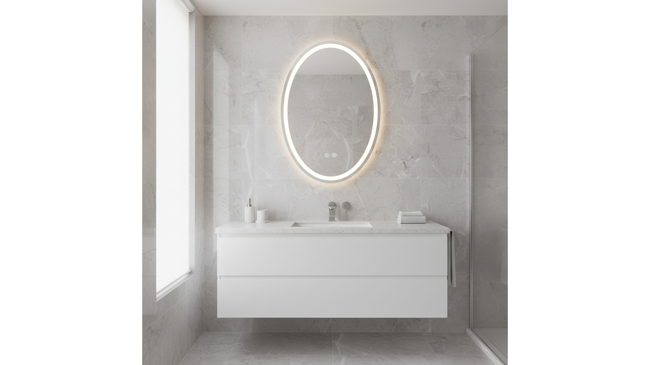 Ovalus LED veidrodis Marco iš Rea derina modernų dizainą su praktiškomis funkcijomis kasdieniam vonios komfortui. 50×70 cm modelis išsiskiria pieniška LED šviesos juosta palei stiklo kraštą — Marco versijoje juosta vientisa, be pertrūkių, todėl vaizdas harmoningas ir elegantiškas.